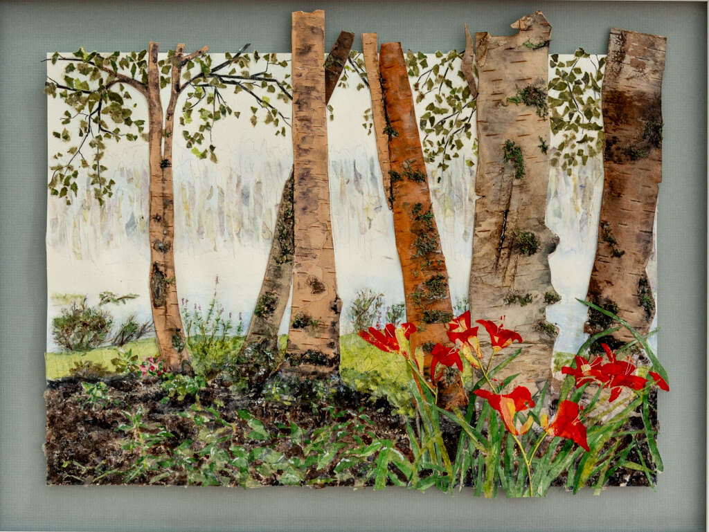 Kate Greenway is an educator, author, and artist who works in watercolour, mixed media collage, and glass – stained, fused and mosaic – sometimes blurring the distinction between mediums. Kate has exhibited in solo and group shows across Ontario, the GTA, and several provinces and states, has served numerous artist residencies, and is the recipient of multiple awards. She builds form and meaning in minute detail, in layers of delicate brushwork, or scraps and foraged treasures, often as small as a piece of thread. Her artwork can be found in private collections across Ontario.