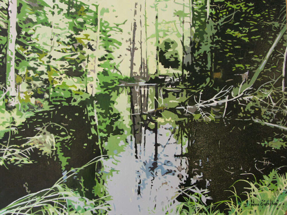 The Ancient Watering Hole - white-tailed deer, snapping turtle and pileated woodpecker hiding in the image