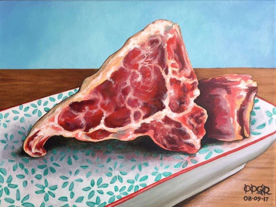 A graphic painting of dinner waiting to be cooked, masterfully done by Diana.