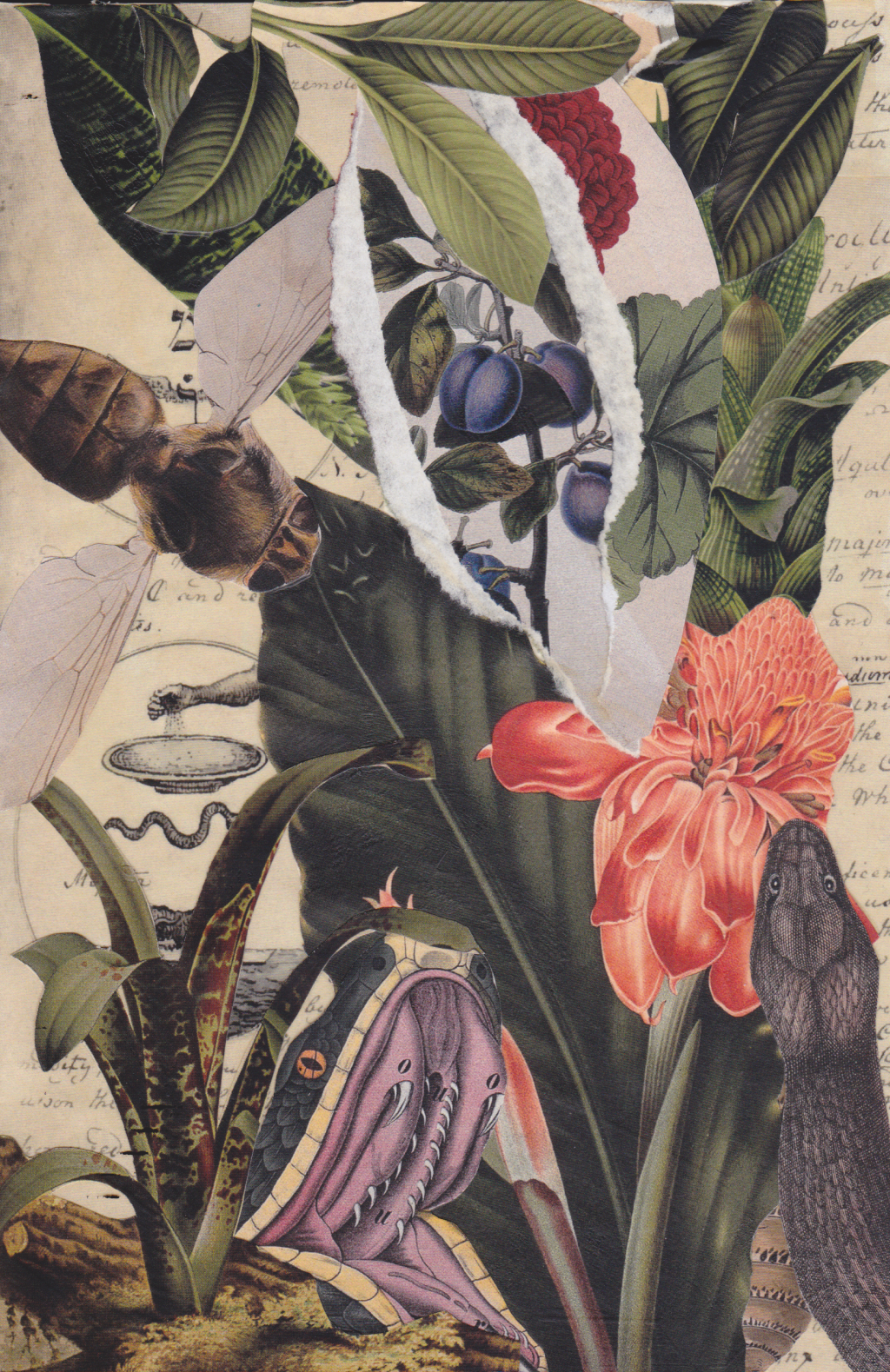This Paper Collage is created by South Simcoe Arts Council member artist, Vanessa Valenzuela. Nature serves as her muse, as she skillfully portrays its raw beauty and the fragile balance between humanity and the natural world. Vanessa fearlessly delves into the enigmatic realm of death, contemplating its mysteries and provoking introspection through her thought-provoking artworks. This Paper Collage is framed under glass. Framed size is 9.5" x 11.5".