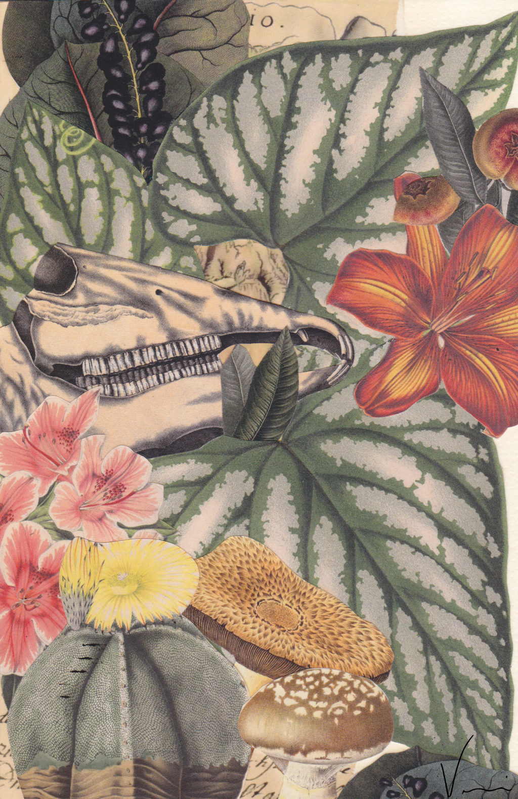 This Paper Collage is created by South Simcoe Arts Council member artist, Vanessa Valenzuela. Nature serves as her muse, as she skillfully portrays its raw beauty and the fragile balance between humanity and the natural world. Vanessa fearlessly delves into the enigmatic realm of death, contemplating its mysteries and provoking introspection through her thought-provoking artworks. This Paper Collage is framed under glass. Framed size is 9.5" x 11.5".