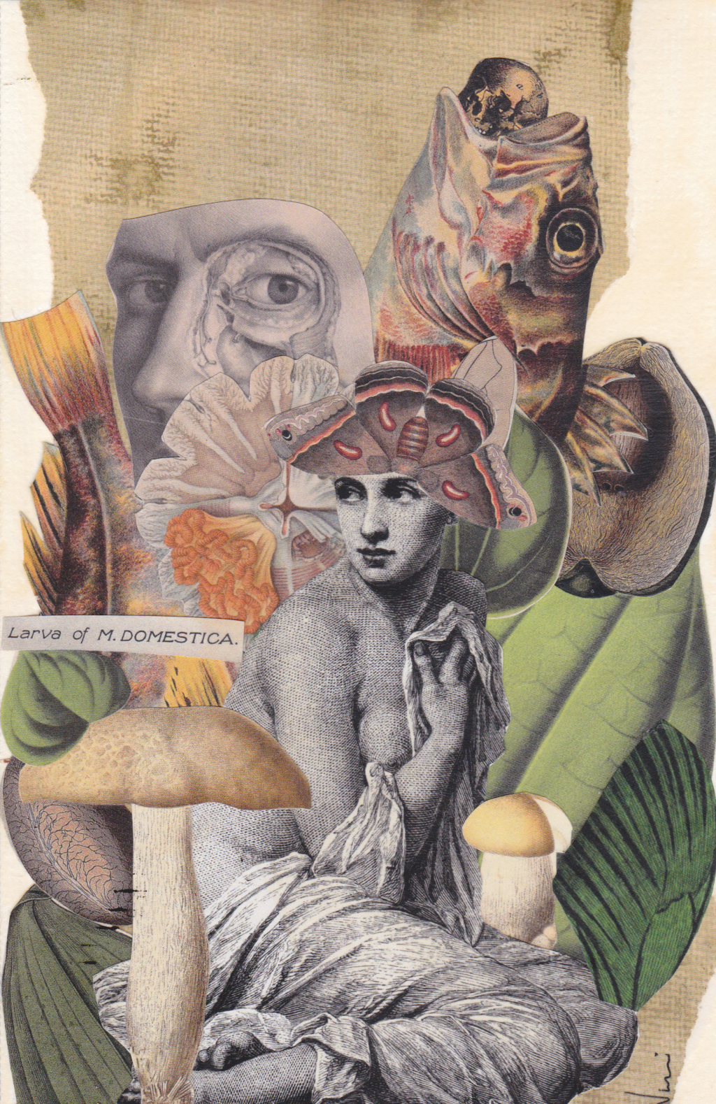 This Paper Collage is created by South Simcoe Arts Council member artist, Vanessa Valenzuela. Nature serves as her muse, as she skillfully portrays its raw beauty and the fragile balance between humanity and the natural world. Vanessa fearlessly delves into the enigmatic realm of death, contemplating its mysteries and provoking introspection through her thought-provoking artworks. This Paper Collage is framed under glass. Framed size is 9.5" x 11.5".